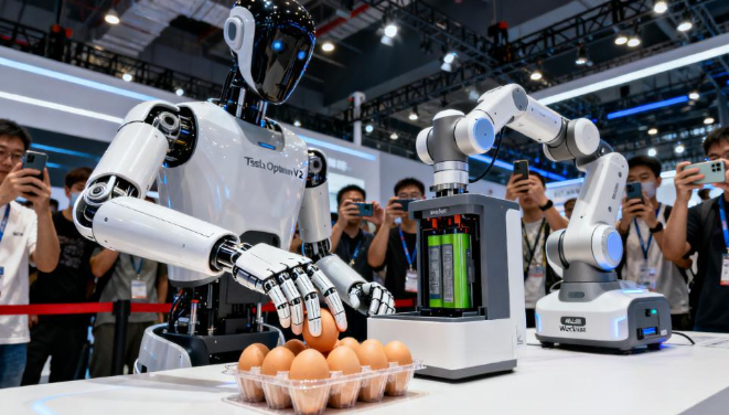 - 群體智能升級:北京人形機(jī)器人創(chuàng)新中心的 “慧思開物 2.0” 平臺實(shí)現(xiàn)跨企業(yè)機(jī)器人協(xié)同,宇樹科技 G2 機(jī)器人憑借新型觸覺傳感器,可完成芯片級裝配任務(wù);